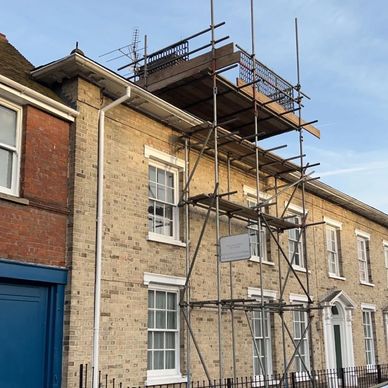 on the The List house we previously carried out a survey via cherry picker on the chimney structure, on the survey we found spalling brickwork, cracked cement & the pointing had deteriorated over time. 3 months later from the survey we was instructed to carry out the necessary repairs to the chimney, We had a scaffold erected & completed the works safely.